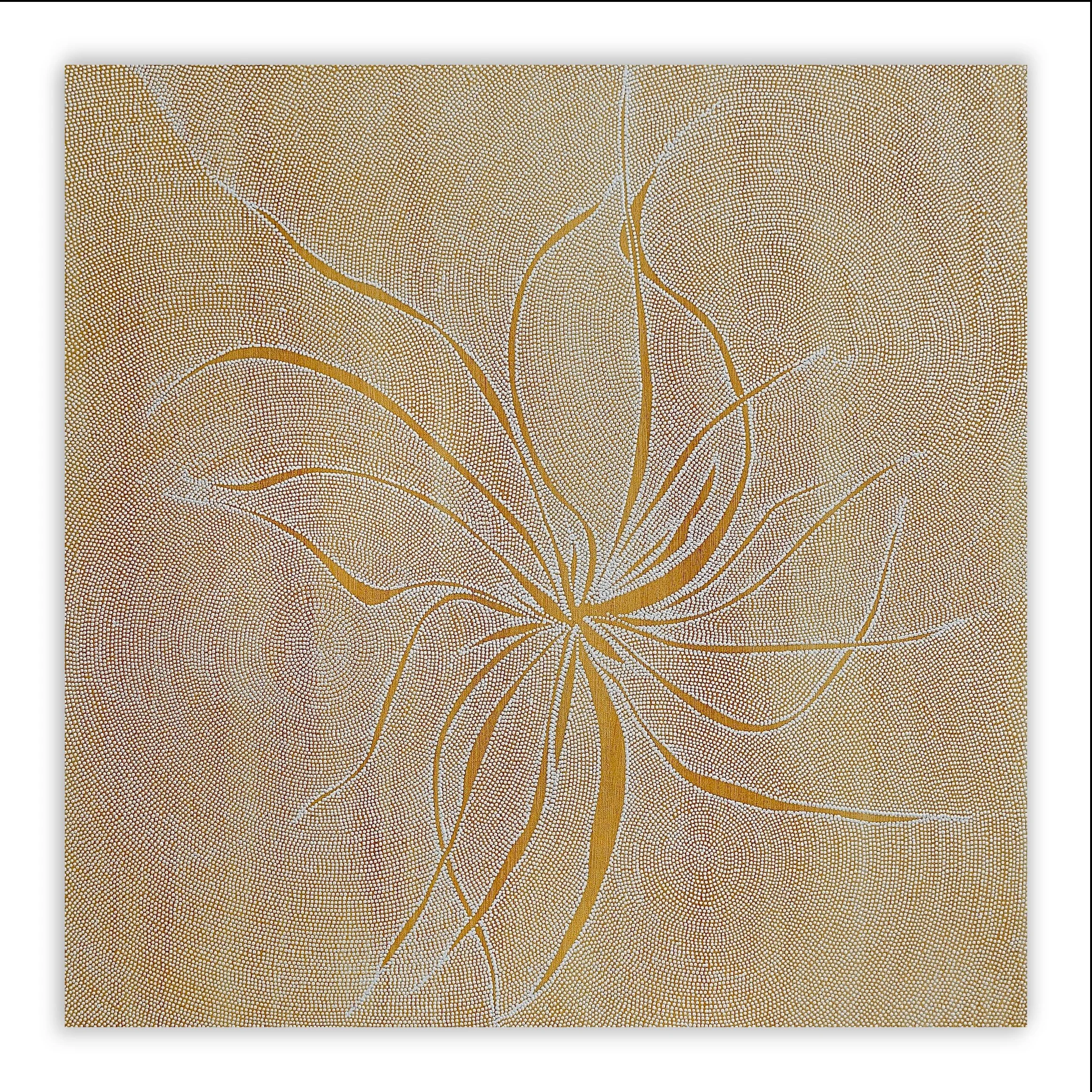 into dreaming,’ the artist notes, describing the work as ‘a meditation on water, spirit, and Country—seen from above, like a bird in flight, dreaming our vast, arid lands into being.’